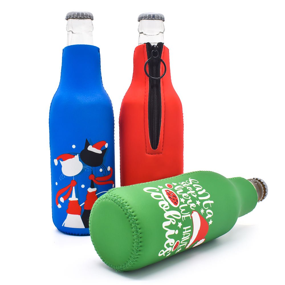 Keep your bottle cold and your drink inside colder with this neoprene bottle cooler. Size and color can be customized according to your need. Advertise your company or send your message on any side of the cooler. Perfect for parties, gatherings, travel and
